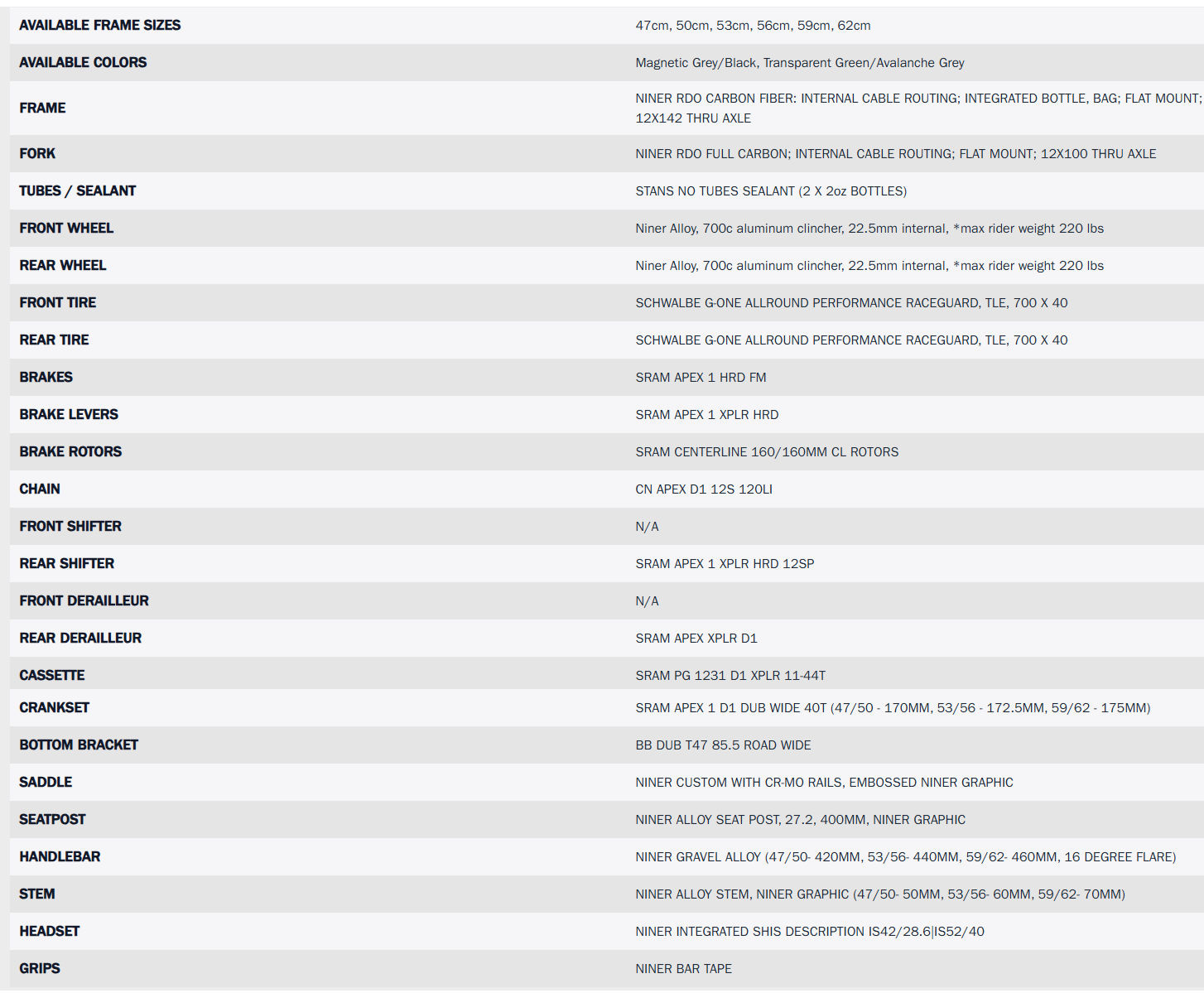 Niner ORE 9 RDO Sram 12spd Apex Xplor Gravel Bicycle
